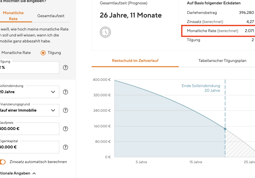 - Sofortige Berechnung der monatlichen Rate.