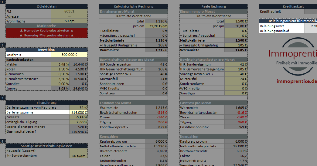 - Zinssatz: Höhere Zinsen verursachen mehr Kosten über die Laufzeit.