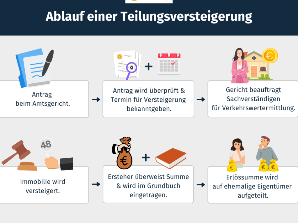 Die wichtigsten Schritte einer Teilungsversteigerung sind: