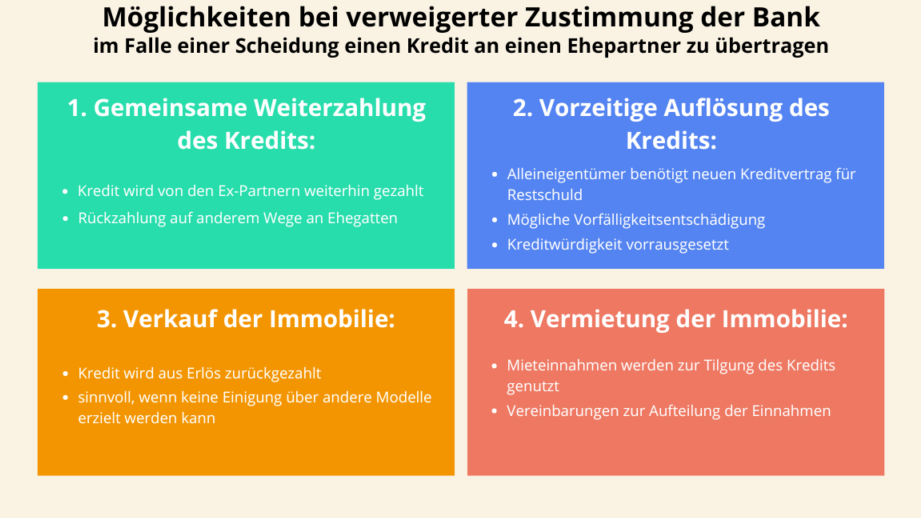 In vielen Fällen wird eine individuelle Lösung angestrebt, die auf den spezifischen Umständen und dem jeweiligen Kreditvertrag basiert. Es ist sinnvoll, sich frühzeitig um die finanzielle Klärung zu kümmern, um Konflikte zu vermeiden.