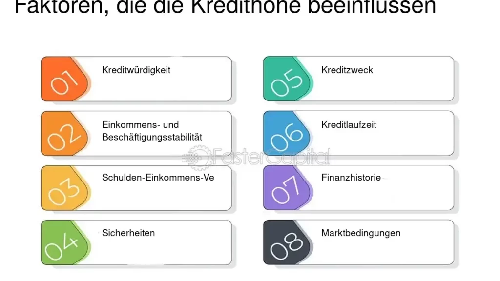 Die Art des Kredits beeinflusst ebenfalls die Kredithöhe. Beispielsweise können Hypothekenkredite aufgrund der Sicherheiten, die sie bieten, höhere Beträge ermöglichen als ungesicherte Konsumkredite. Es ist wichtig, die Vor- und Nachteile jedes Kredittyps zu verstehen.