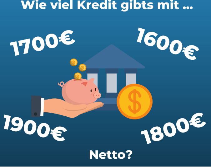 Die Nettolohnhöhe wirkt sich direkt auf die maximale Kreditrate aus. Bei einem monatlichen Netto von 1900 Euro können die Kreditanbieter beispielsweise folgende Beträge bieten: