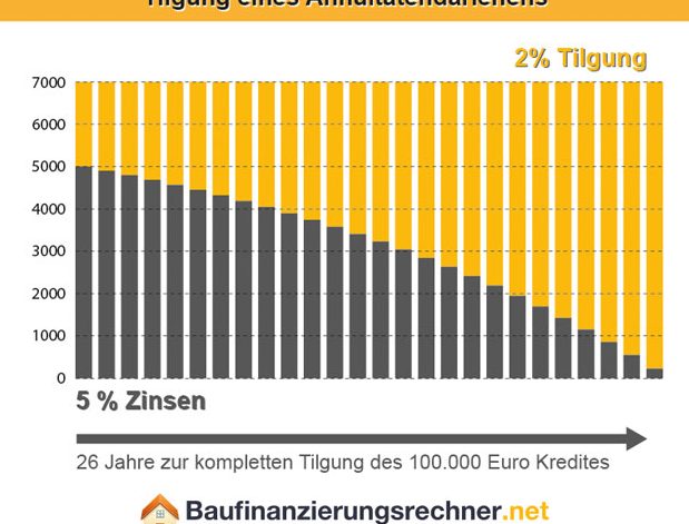 Nehmen wir an, der Zinssatz liegt bei 3 % und die Laufzeit beträgt 20 Jahre. Bei einer Tilgung von 2000 Euro pro Monat können wir eine Beispielrechnung durchführen. Dies könnte wie folgt aussehen: