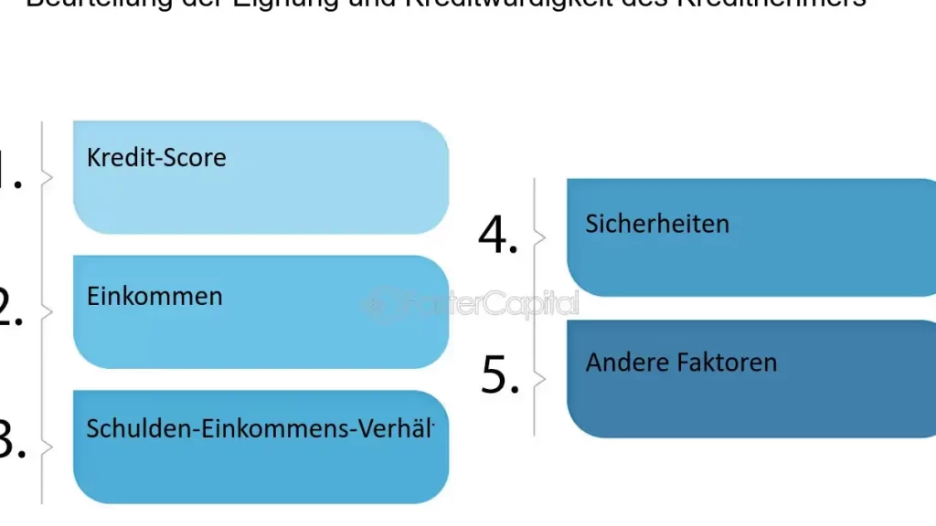 Der Kreditprozess umfasst neben der Bonitätsprüfung auch die Bewertung anderer Faktoren, wie Einkommen und Ausgaben. Ein stabiler Arbeitsplatz erhöht die Chancen auf eine Kreditzusage. Wir sehen, dass der Kreditnehmer für den Kreditgeber ein Mindestmaß an Sicherheit darstellen muss.